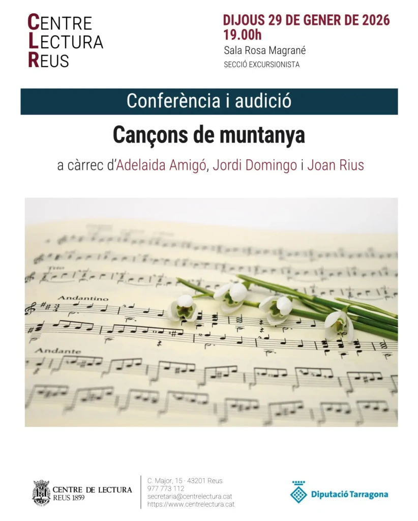 Conferència i audició de cançons de muntanya, a càrrec d’Adelaida Amigó, Jordi Domingo i Jan Rius.