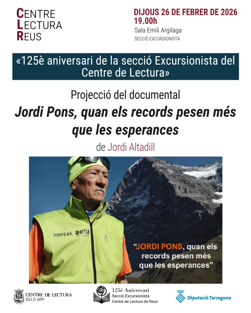 Projecció del documental Jordi Pons, quan els records pesen més que les esperances, de Jordi Altadill. En aquesta pel·lícula es recullen les vivències de Jordi Pons, un referent viu de l’excursionisme i l’alpinisme a Catalunya. L’any 2024 es van celebrar els 50 anys que Pons, fent cordada amb Emili Civis i Josep Manuel Anglada, aconseguien fer el cim de l’Anapurna est, de 8.026 metres, i es convertien en els primers catalans a assolir un cim de més de 8.000 metres.