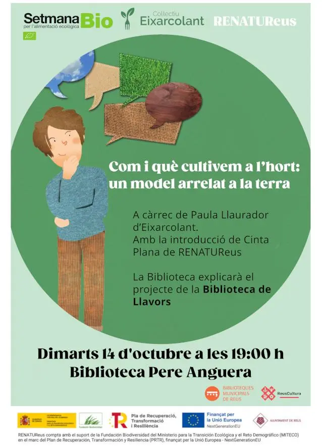“Com i què cultivem a l’hort: un model arrelat a la terra” a càrrec de Paula Llauradó d’Eixarcolant. Amb la introducció de Cinta Plana de RenaturReus.
